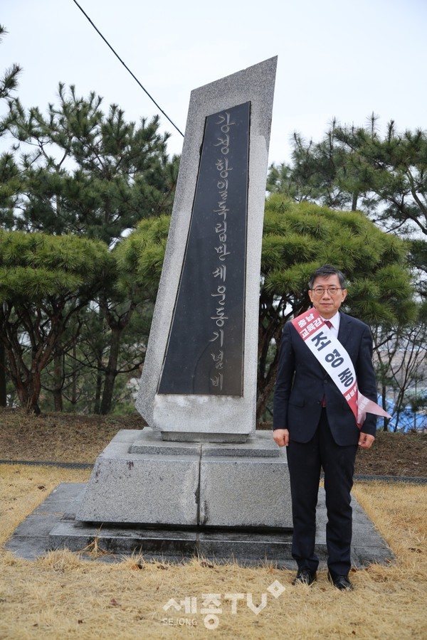조 예비후보는 먼저 강경 옥녀봉 공원에 있는 강경항일만세운동기념비를 찾아 참배하고 일제치하 강경지역민들의 자주독립 정신을 기리는 시간을 가졌다.