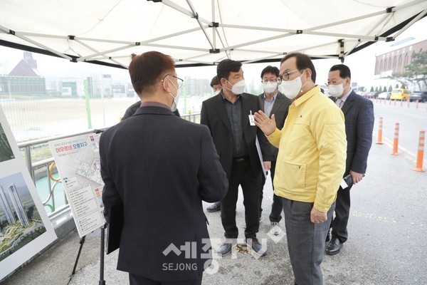박상돈 천안시장은 이날 오는 6월 개소하는 도시재생어울림센터와 지난해 국토부 민관협력형 도시재생리츠 사업대지로 선정된 오룡지구에 이어 두정역 북부출입구 신설 공사 현장을 방문했다.