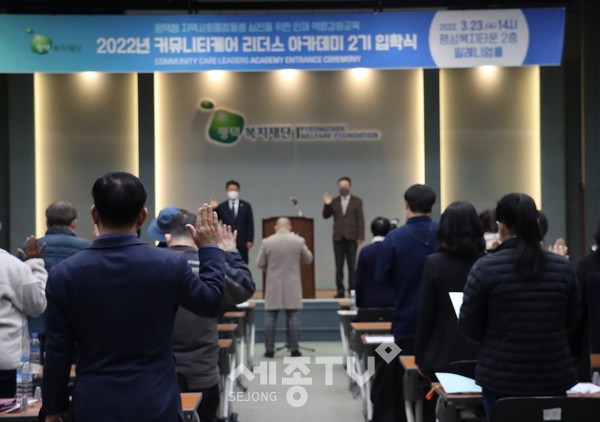(재)평택복지재단(이사장 김준경)은 지난 3월 23일 팽성복지타운 2층 밀레니엄홀(14:00)에서 평택형 지역사회 통합돌봄 실천을 위한 「커뮤니티케어 리더스 아카데미」2기 입학식을 진행했다.