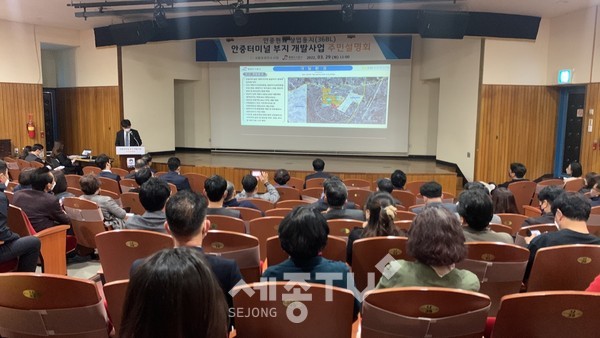 이 자리엔 정장선 평택시장, 김재수 평택도시공사 사장, 민간컨소시엄 관계자 및 지역주민 등 약 100여 명이 참석한 가운데 본 개발사업의 △사업개요 및 개발방향 △추진경위 및 향후일정 △개발방향 및 비전 △사업계획안 및 컨셉 △문화‧교육공간 도입계획 △안중터미널 신축계획 △지역내 파급효과 등에 대해 설명하고 질의응답을 갖는 시간으로 구성되었다.