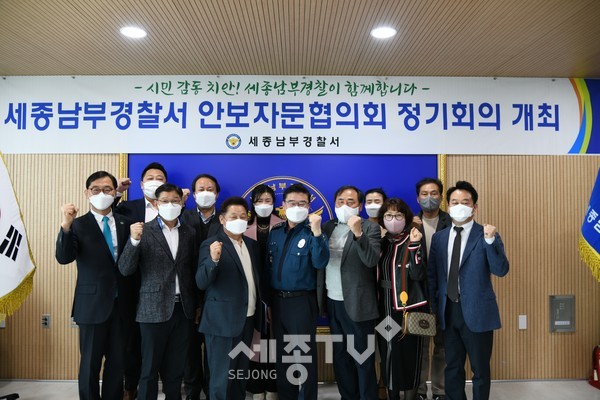세종남부경찰서(서장 김경열)는 3월 30일 11:00 경찰서 3층 회의실에서 김경열 서장과 세종남부서 과·실장, 김권중 안보자문협의회 회장 등 24명이 참석한 가운데 「안보자문협의회 정기회의 및 신규회원 위촉식」을 개최했다.