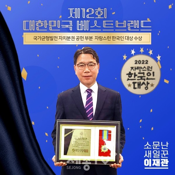 더불어민주당 천안시장선거 이재관 예비후보가 대한민국베스트브랜드협회가 주최하는 제12회 2022 자랑스런 한국인 대상을 수상했다.