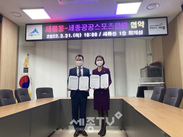 세종특별자치시 새롬동(동장 김산옥)이 시민들의 체육 참여 활성화를 위해 지난 31일 세종공공스포츠클럽과 업무협약을 체결했다.