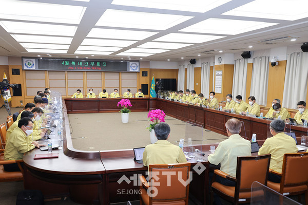 허태정 대전광역시장은 5일 시청 대회의실에서 열린 4월 확대간부회의에서 민선7기 사업성과가 민선8기로 연결될 수 있도록 흔들림 없는 시정 추진을 당부했다.