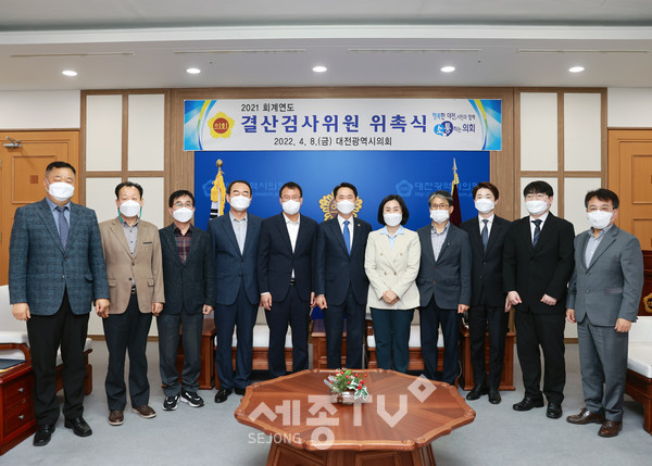 대전광역시의회(의장 권중순)는 8일 의장접견실에서 2021회계연도 결산검사위원 위촉식을 개최했다.