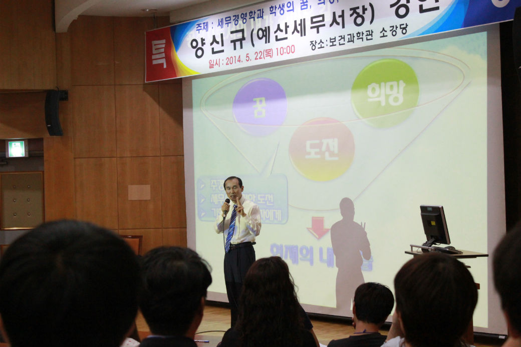 23일 예산세무서에 따르면 양신규 예산세무서장은 37년간 공직생활의 경험을 이야기하며, 인생의 선배로서 앞으로의 희망찬 삶을 위해 중요한 것들에 대해 대학생들에게 조언을 아끼지 않았다.