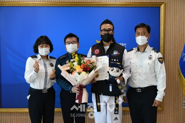 세종남부경찰서장은 교내에 설치된 어린이 승·하차 허용 구간에서 자녀들의 등·하교를 돕는 학부모들의 차량으로 인한 안전사고 위험이 높아 학부모와 학교 관계자들의 관심과 주의가 요구된다고 당부하고, 특별히 나성초등학교 통학로에서 교통안전지도 활동을 하고 있는 황동환씨에게 감사장을 수여하였다.