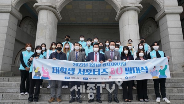 백석대학교 사회복지학부생 20명으로 구성된 서포터즈는 코로나19 확산 방지를 위한 고강도 사회적 거리두기 시행으로 경로당·노인종합복지관 등 대면 활동 및 모임이 제한되어 발생한 어르신의 돌봄 사각지대를 최소화하기 위해 출범하였으며, 올 10월까지 세종시 독거․노인 가구의 1:1 안부전화 및 정서지원 활동에 참여한다.
