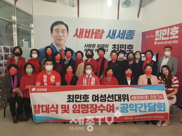 최민호 국민의힘 예비후보 여성선거대책위원회 발대식이 30일 오전 선거사무실(대평동 58)에서 개최됐다.