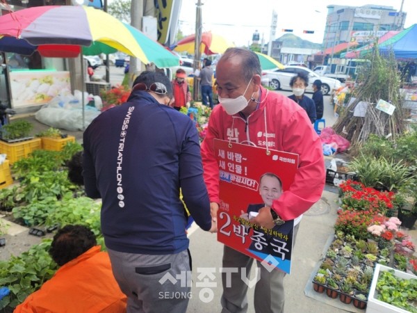 국민의힘 충남 도의원 제2선거구 박종국 예비후보가 지난29일 덕산시장 장날을 맞춰 도민들에게 인사를 전하며 지역발전을 위한 공약을 알렸다.