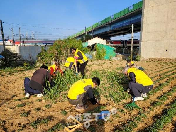 세종특별자치시 소정면 주민자치회(회장 김명회)가 지난 2일 대곡리, 곡교천 등 송엽국 식재지 일원에서 회원 15명이 참여한 가운데 잡초제거, 환경정화활동을 실시했다.
