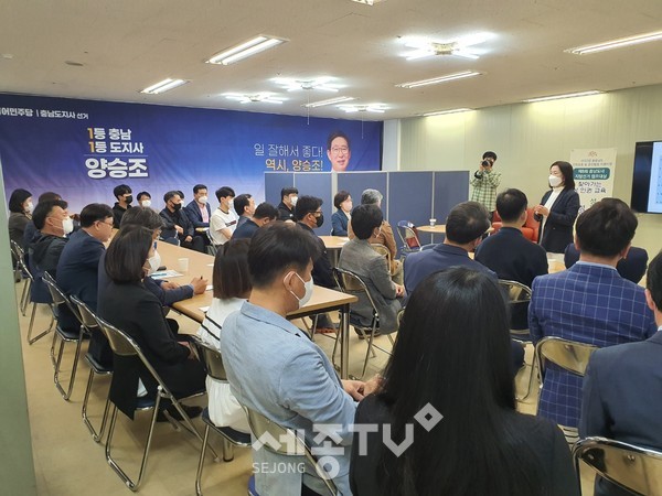 양승조 충남도지사 후보 선거대책위원회는 10일 오전 천안시 서북구 쌍용동에 위치한 선거사무실에서 선대위 핵심관계자와 자원봉사자들을 대상으로 ‘성인권 교육’을 실시했다.
