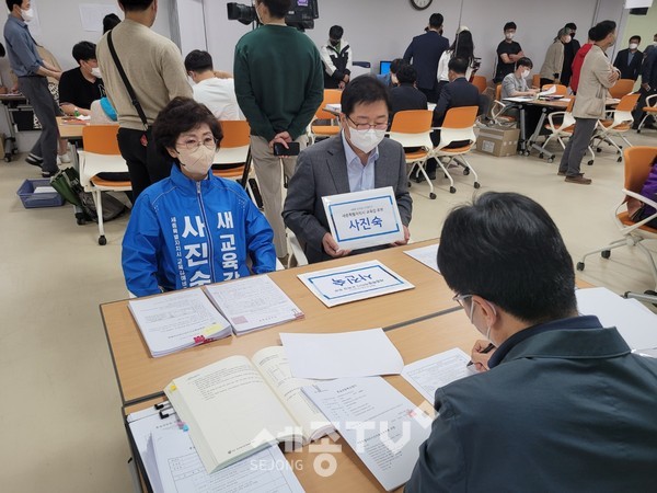 사진숙 세종시 교육감 후보는 후보등록을 마치며 “이번 선거는 새로운 세종교육을 만드는 새로운 교육감을 선출하는 선거인 만큼 시민들의 관심이 필요하다.”는 점을 강조하면서 선거에 임하는 각오를 밝혔다.