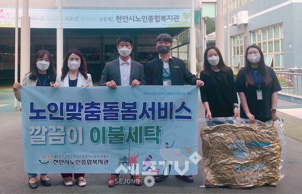 천안시노인종합복지관(관장 김호영)은 5월부터 12월까지 노인맞춤돌봄서비스 300명의 어르신을 대상으로 깔끔이 이불세탁 서비스를 실시하고 있다.