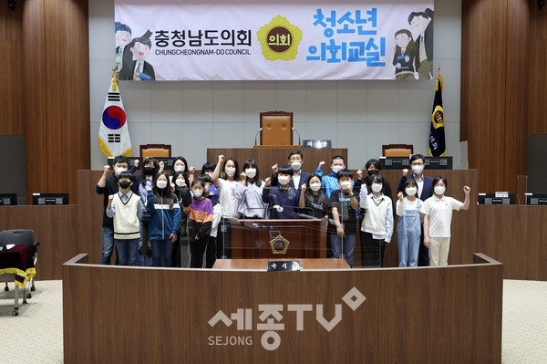 충남도의회(의장 김명선)는 13일 청양 청송초등학교 학생 17명과 지도교사 3명이 참여한 가운데 ‘청소년 의회교실’을 개최했다.