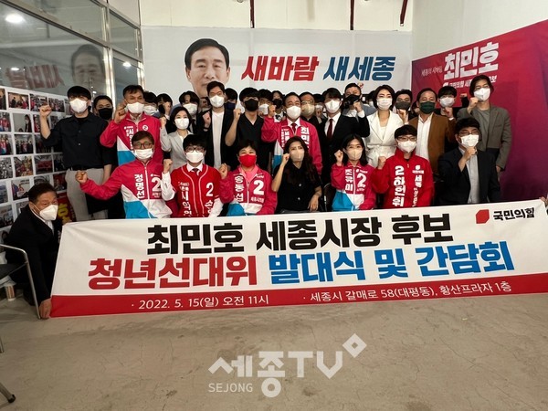최민호 국민의힘 세종시장 후보는 15일 선거사무소(갈매로 58)에서 청년선대위원회 발대식을 개최했다.