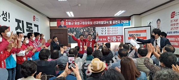 진동규 국민의 힘 대전 유성구청장 후보는 15일 오후 2시 유성구 장대동 선거사무소에서 선대위 발대식을 하고 2022 지방선거 승리를 위한 본격 발걸음을 시작했다.