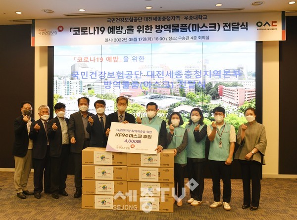 대전동구 소재 우송대학교에서 열린 후원식에는 국민건강보험공단 대전세종충청지역본부, 우송대학교, 대전 동구 다문화가족지원센터가 참석했으며, 감염병 예방을 위한 KF-94마스크 4,000매를 전달하였다. 전달된 마스크는 대전 동구 다문화가족지원센터를 통해 다문화가정 취약계층 1,348세대에 지원 될 예정이다.