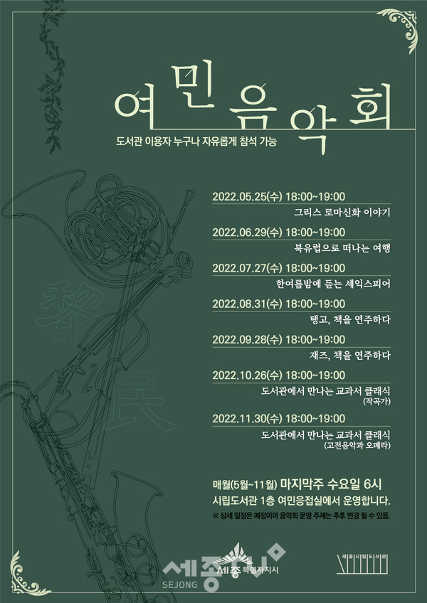 - 세종시립도서관, 매월 마지막주 수요일 여민음악회 개최 -