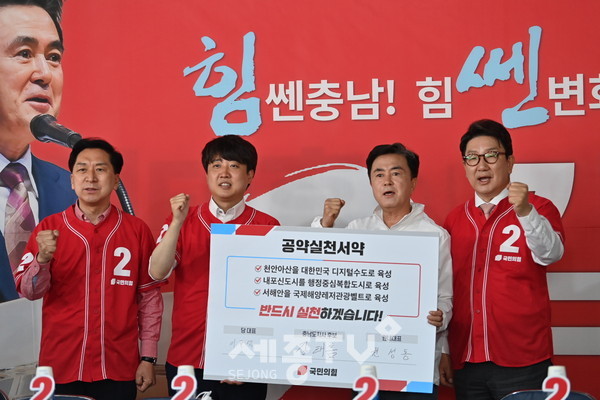 권성동 원내대표도 “충청의 아들 윤석열 대통령께서 충남에 아낌없는 지원을 하겠다고 이미 약속했다”면 “대통령을 위시해 당 지도부가 모두 김 후보의 우군이고 강력한 지지세력”이라고 말했다.