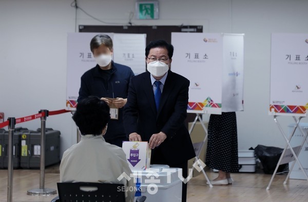 장종태 더행복캠프는 장 후보가 이선용·김창관 상임선대위원장, 최미자 서구의원 후보 등과 함께 서구청 지하 1층에 있는 둔산2동 사전투표소에서 소중한 한 표를 행사했다고 27일 밝혔다.