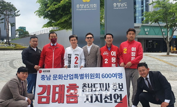 충남영상위원회 조선묵 위원장 등 6백여 명 문화예술인이 김태흠 국민의힘 충남도지사 후보 지지를 선언했다.