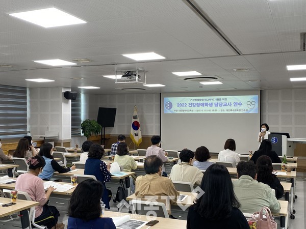 대전광역시교육청(교육감 설동호)에서는 6월 15일(수)에 대전특수교육원 연수실에서 관내 초·중·고등학교 교사 40여 명이 참석한 가운데 ‘2022 건강장애학생 담당 교사 연수’를 개최하였다고 밝혔다.