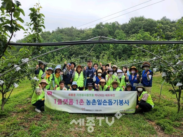이날 연서면사무소 관계자, 세종시자원봉사센터 봉사단은 연서면 청라리 배 재배농가를 찾아 배 봉지 씌우기 등 농작업을 도우며 구슬땀을 흘렸다.