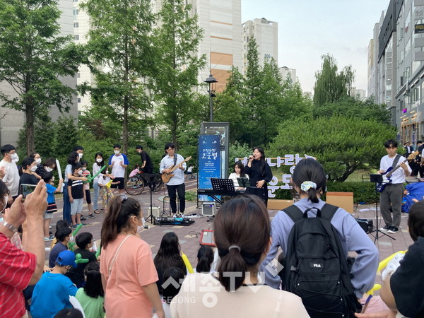 시는 세종시 문화재단과 지난 18일부터 오는 9월말까지 고운동 남측 복합커뮤니티센터 인근 실개천, 상가 등에서 2022년 상생형 문화거리 사업으로 ‘반짝반짝 고운별’을 추진한다고 19일 밝혔다.