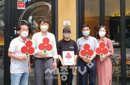 올해 들어 네 번째 진행하는 현판 전달식으로, 현재 도담동에서는 착한가게, 착한가정, 개인 기부자 등 123명이 정기 기부에 참여하고 있다.