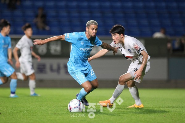양주를 바짝 추적하기 위해 호도오프와 최랑 카드를 꺼내들었다. 천안에서 데뷔전을 맞은 호도우프의 패스에 이은 최랑의 슈팅으로 양주의 골문을 위협했지만, 아쉽게도 득점으로 이어지지는 못했다.