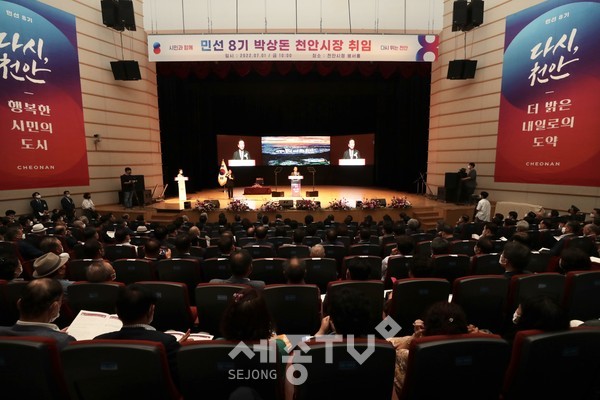 민선8기 박상돈 천안시장은 1일 오전 10시 시청 봉서홀에서 취임식을 열고 ‘시민과 함께 다시 뛰는 천안’을 향한 닻을 올렸다.