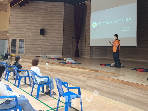 천안서북소방서(서장 구동철)가 지난 30일 오성중학교 교직원 26명을 대상으로 응급처치 및 심폐소생술 교육을 실시했다.