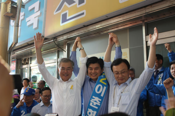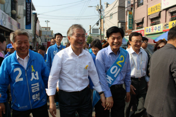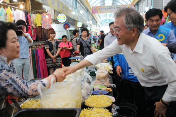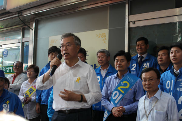 이날 문재인 의원은 이해찬 의원 등과 전통시장에서 시민들에게 이 후보와 새정치민주연합 후보자들의 지지를 호소했으며 호떡을 맛보기도 했다.