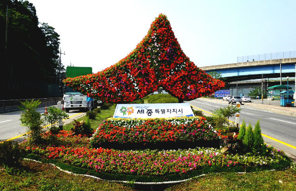 권운식 읍장은 "아름다운 세종시를 널리 알리기 위해 시 엠블럼을 조형화한 꽃탑을 설치했다"며 "이번 꽃탑 설치로 도로변이 환해졌다는 시민들의 격려와 칭찬이 자자해 뿌듯하다"고 말했다.