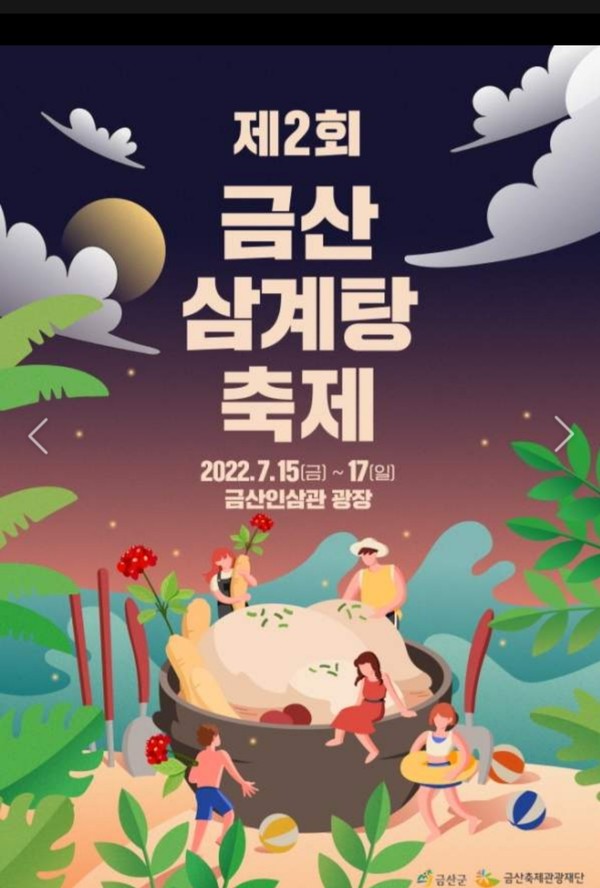 제2회 금산 삼계탕 축제가 오는 15일 부터 17일 까지 금산축제관광재단주관으로 금산 인삼전시관 광장에서 화려하게 펼쳐진다.
