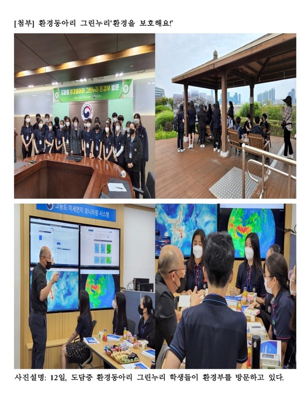도담중학교(교장 이현영,이하 도담중)환경동아리 그린누리가 12일 환경부를 방문했다.