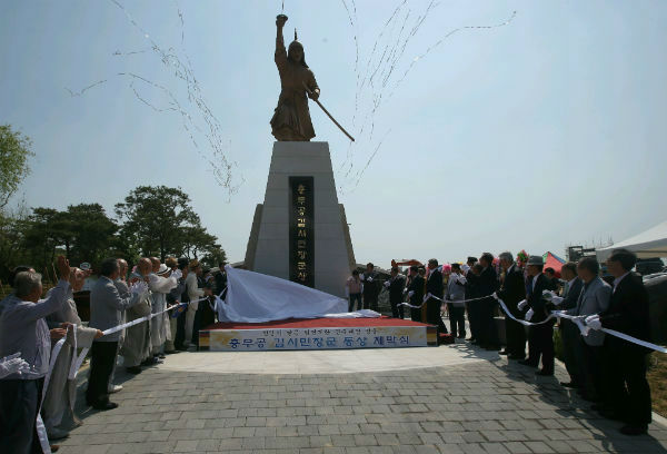 천안시는 30일 오후 2시 삼용동 508번지 천안삼거리공원 정문 앞에서 성무용 시장, 최민기 시의회 의장, 김법혜 충무공 김시민장군 동상건립 추진위원장, 안동김씨 문중, 천안시민 등 250여명이 참석한 가운데 충무공 김시민장군 동상 제막식을 가졌다.