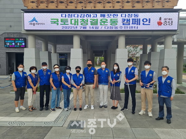 세종특별자치시 다정동(동장 김학준)이 지난 14일 관내 상가, 근린공원 일원에서 바르게살기운동 다정동위원회, 다정동 관계자 등 20여 명이 참여한 가운데 국토대청결 운동을 실시했다.