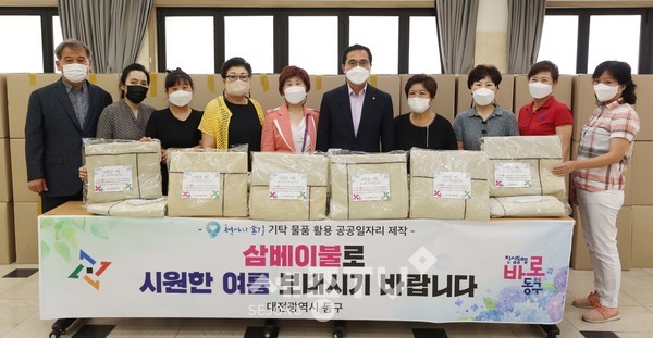 대전 동구, 쪽방촌 및 저소득층 주민에 삼베이불 제작·배부