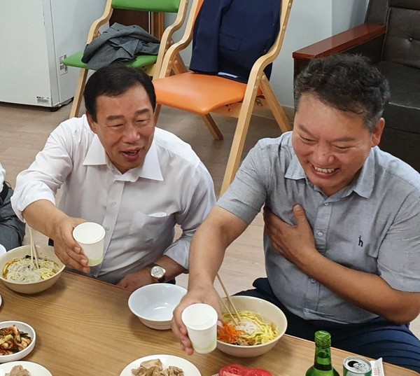 주민들과 경로당 노인들은 잔치국수로 최민호 시장과 축하인사와 더불어 대화를 나누었다.