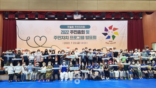 세종특별자치시 한솔동 주민자치회(회장 박순영)가 22일 한솔동복합커뮤니티센터 정음관 다목적강당(3층)에서 주민총회 및 주민자치프로그램 발표회를 개최했다.