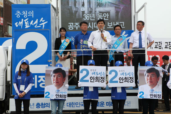 이날 안 후보는 오전 홍성 방문에 이어 천안과 아산을 잇달아 찾아 유세활동을 벌였다.