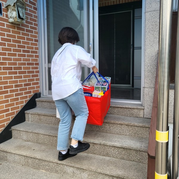 - 즉석밥, 김, 라면 등 다양한 먹거리 담긴 식료품 꾸러미 전달 -