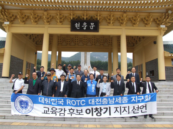 대한민국ROTC 대전충남세종지구회는 1일 오전 ROTC창설 제53주년 기념으로 국립대전현충원에서 '나라사랑 호국봉사' 행사를 마친 후 "이창기 대전시교육감 후보를 지지한다"고 성명을 발표했다.