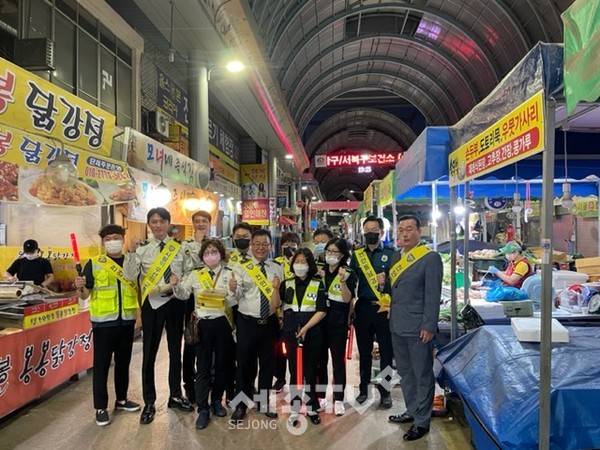 이번 합동순찰은 추석 명절을 앞두고 금융시설․금은방, 편의점 강도 등 강력범죄 예방 및 평온한 명절 분위기 조성을 위해 전통시장과 상가 밀집 지역인 먹자골목과 원룸촌, 주택가 밀집 지역 중심으로 보이스피싱 및 절도예방 도보 순찰을 실시하며 보이스피싱 예방 전단지 와 마스크 400매를 배포 가시적 방범효과를 높였다.