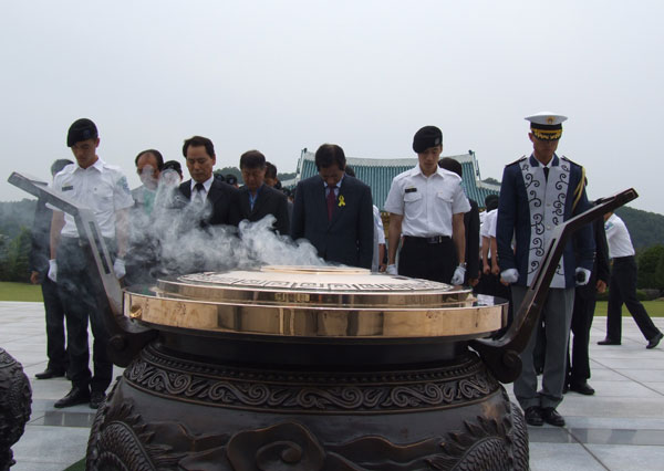 이창기 후보는 이날 100여명의 지구회원단 및 학군단 후보생들과 함께 ROTC창설 제53주년 기념으로 대전현충원에서 가진 ‘나라사랑 호국봉사’ 행사에서 합동분향을 마치고 학군동문묘비를 찾아 근조리본을 부착하고 참배시간을 가졌다.