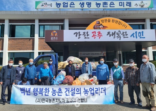 이날 참석한 연합회 임원진 15명은 지난 4월부터 폐 영농자재 수거의 날을 통해 모은 폐농약 공병 2t을 한국환경공단에 전달했다.
