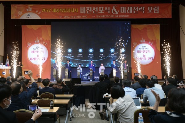 한편, 이날 비전선포식은 최민호 시장과 상병헌 시의장, 최교진 교육감, 기관·사회단체장, 시민대표 등 300여 명이 참석한 가운데 미래전략수도 세종의 비전을 시민들과 공유하기 위해 마련됐다.