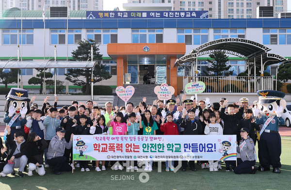 이장우 대전시장은 13일 아침 천동초등학교 앞에서 ‘등굣길 학교폭력 예방 캠페인’에 참여하고, 변화하는 학교폭력 양상에 대응하기 위해 대전시(대전자치경찰위)-대전경찰청(동부서)-천동초 기관간 협력체계를 구축했다.